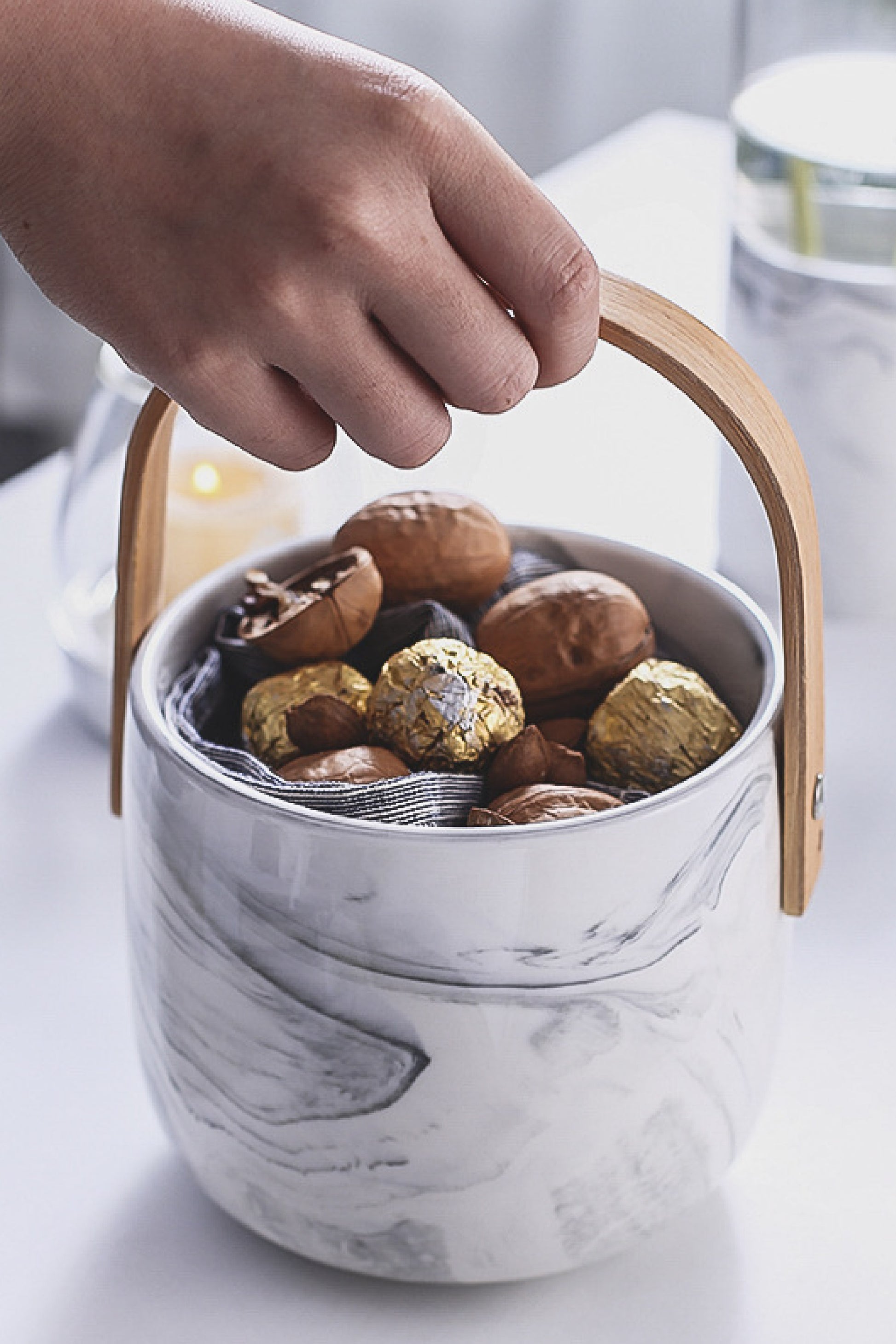 La Base Milano es una pieza versátil y elegante que se adapta a distintos usos en tu hogar. Su acabado marmoleado aporta un toque moderno y sofisticado, mientras que el asa de madera le da calidez y practicidad.