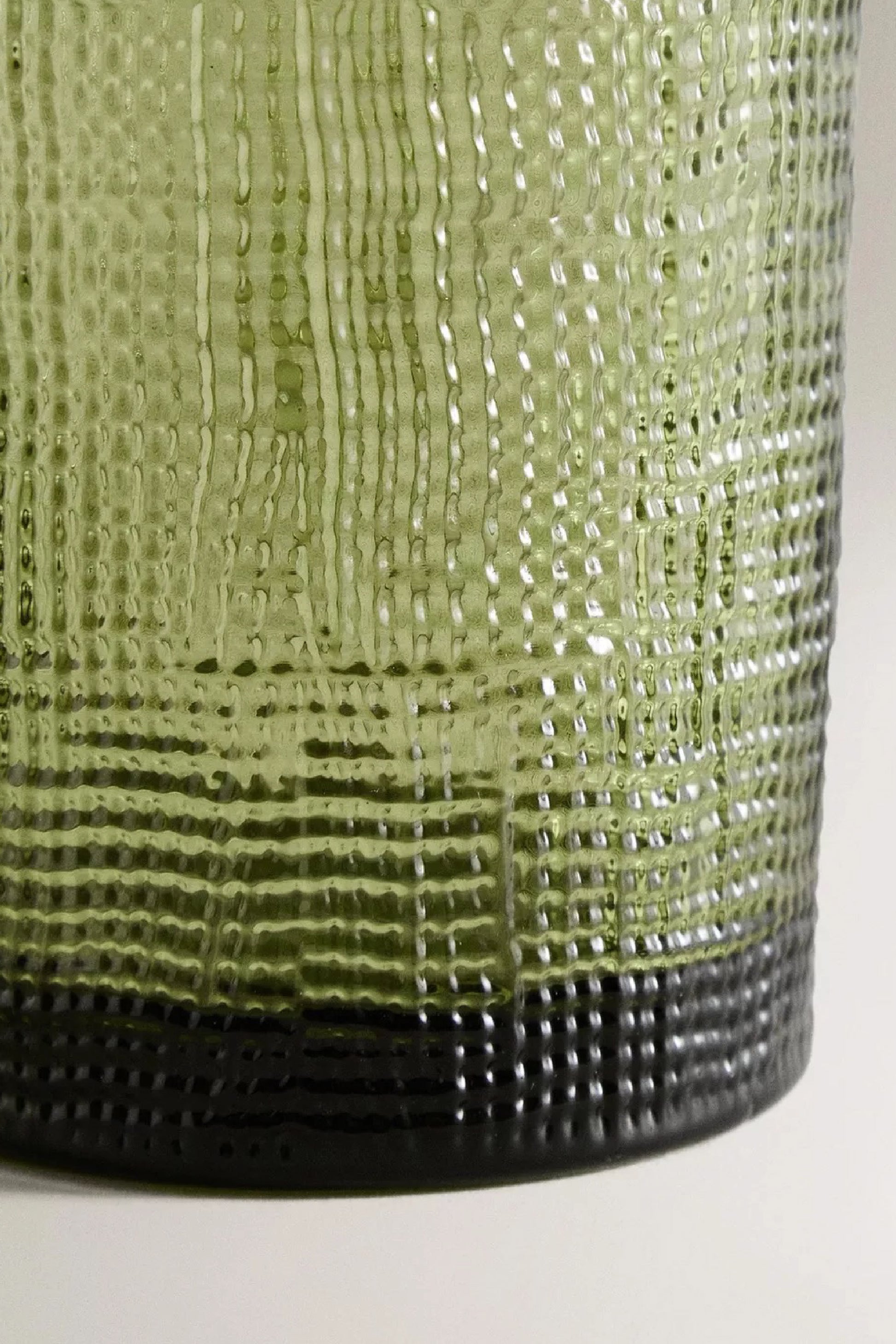 Cristal verde con textura geométrica: un diseño distintivo y elegante.