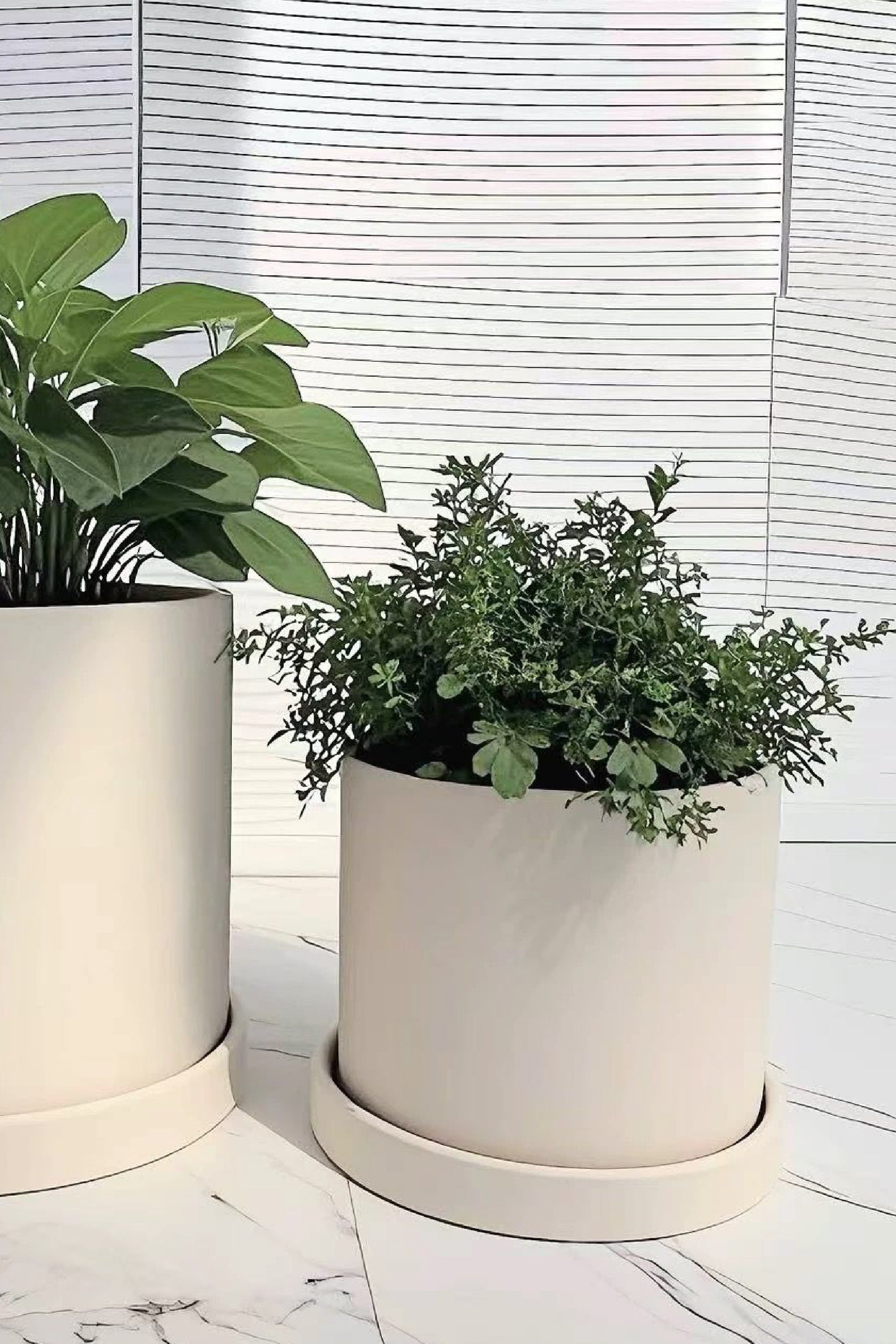 Incluye un plato a juego que no solo complementa su estética, sino que también ofrece mayor practicidad al momento de regar tus plantas.