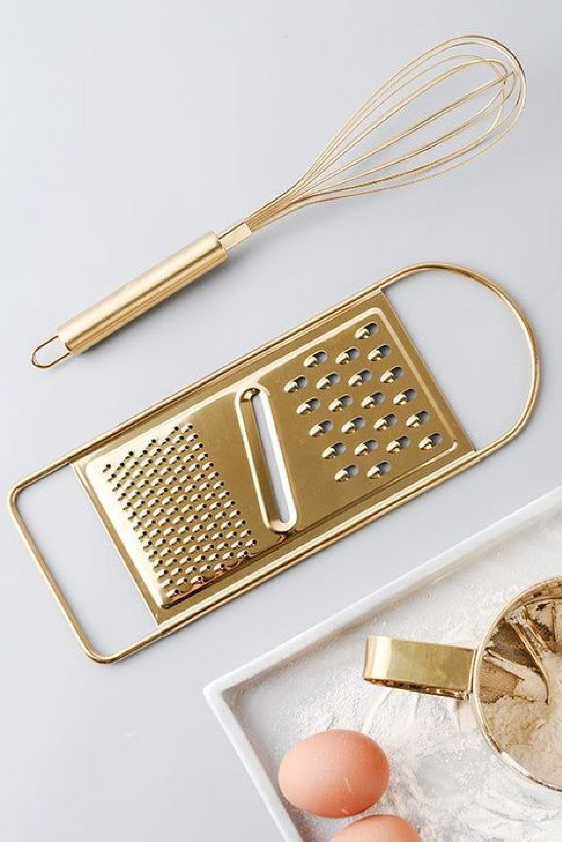 Nuestro rallador Gold combina funcionalidad y sofisticación en una sola pieza. Fabricado con acero inoxidable de alta calidad y un acabado dorado que resalta en cualquier cocina, es ideal para rallar quesos, frutas, vegetales y más, con estilo y precisión.