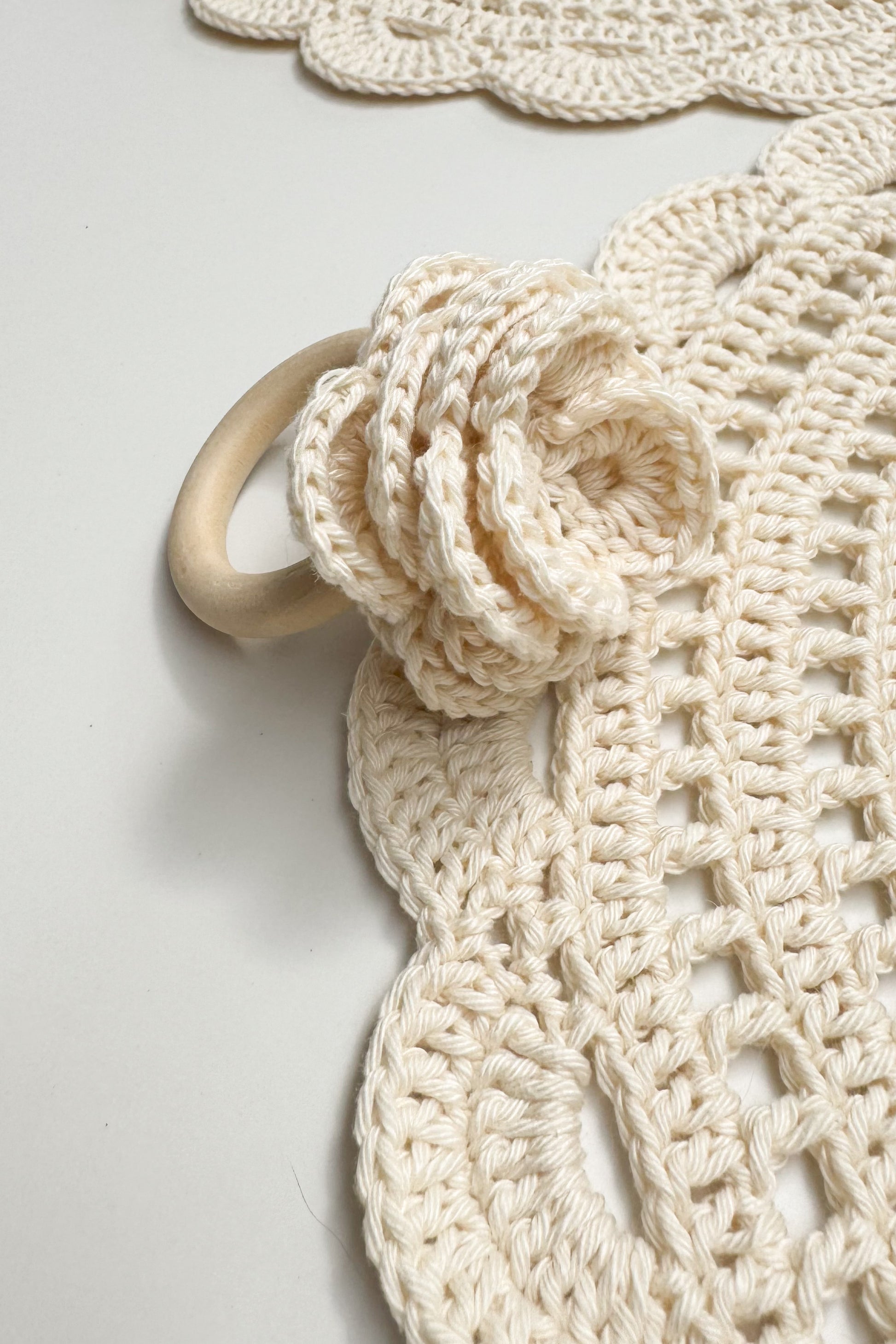 Tejido a mano en crochet por artesanos ecuatorianos, cada pieza es única y hecha con dedicación.