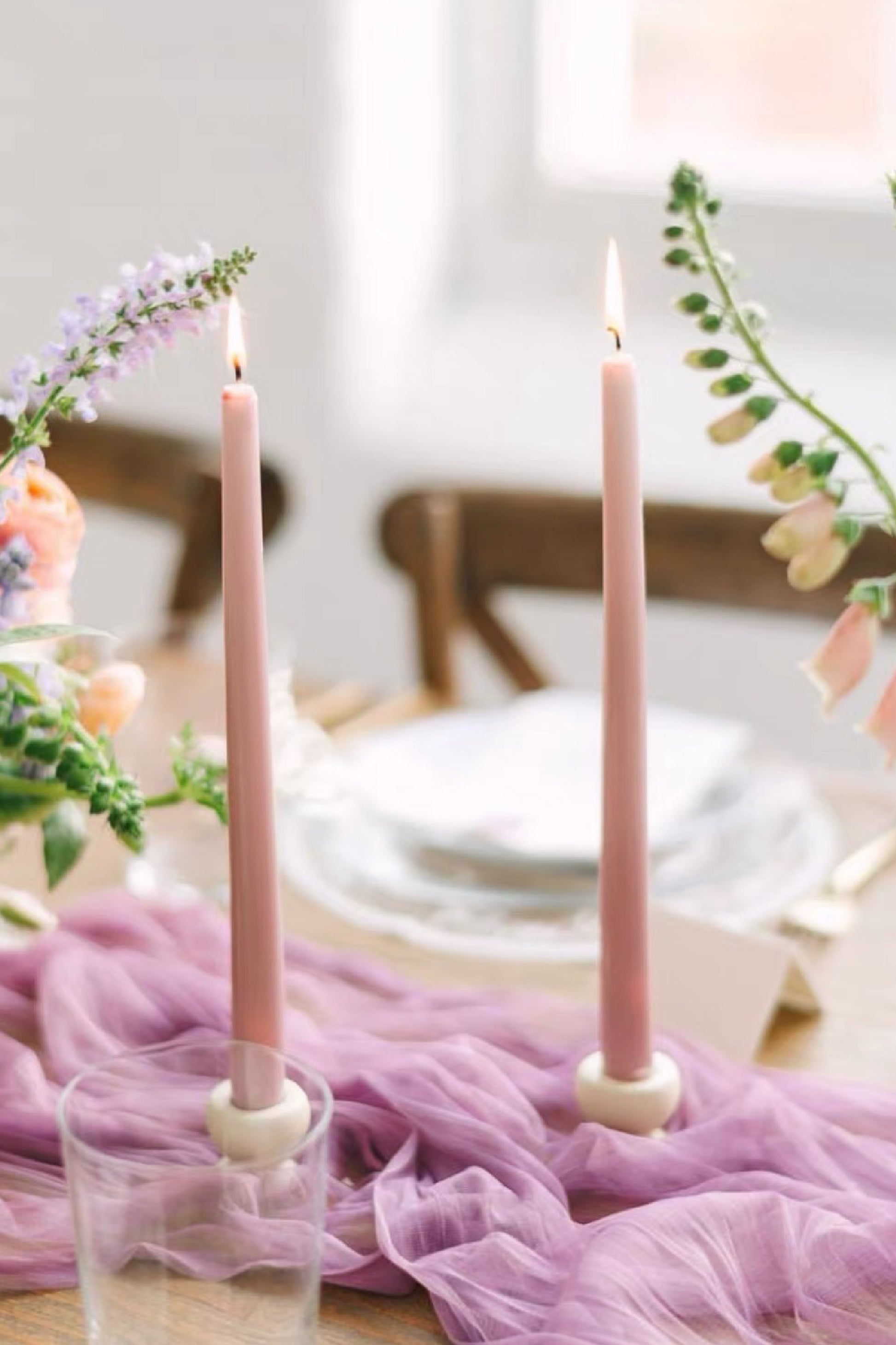Su forma delgada y acabados delicados las hacen ideales para complementar candelabros altos, decorar en pareja o usar de forma individual según el momento.